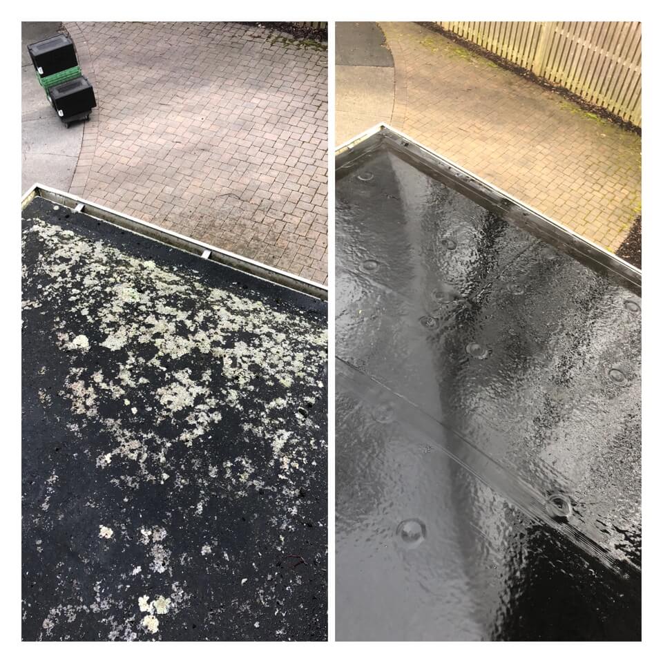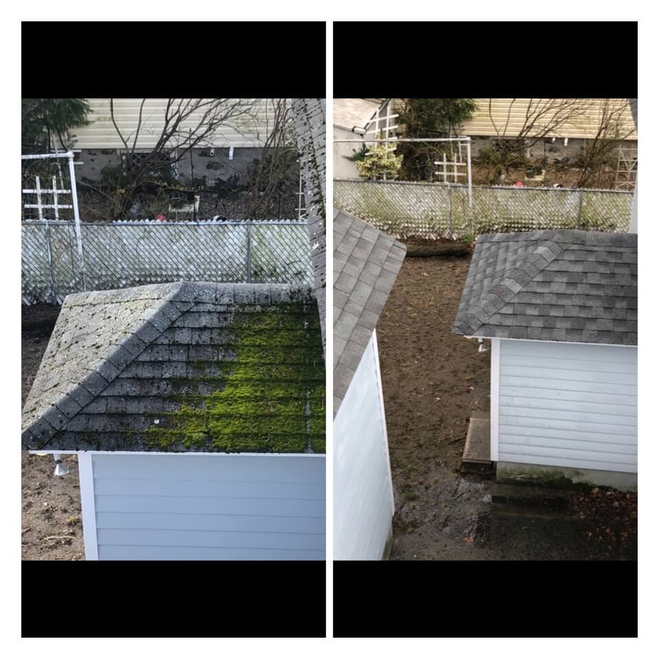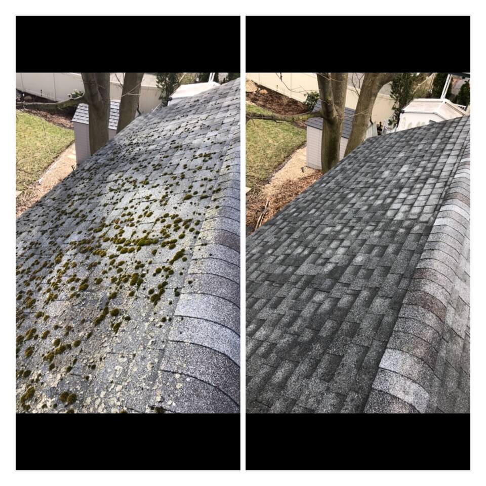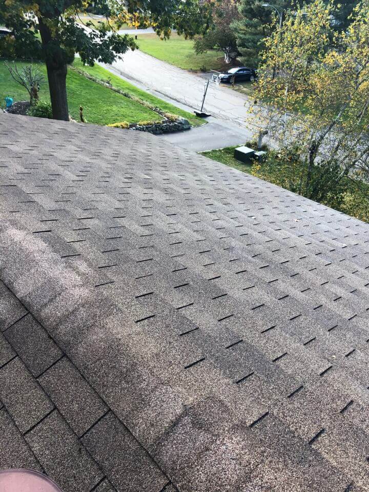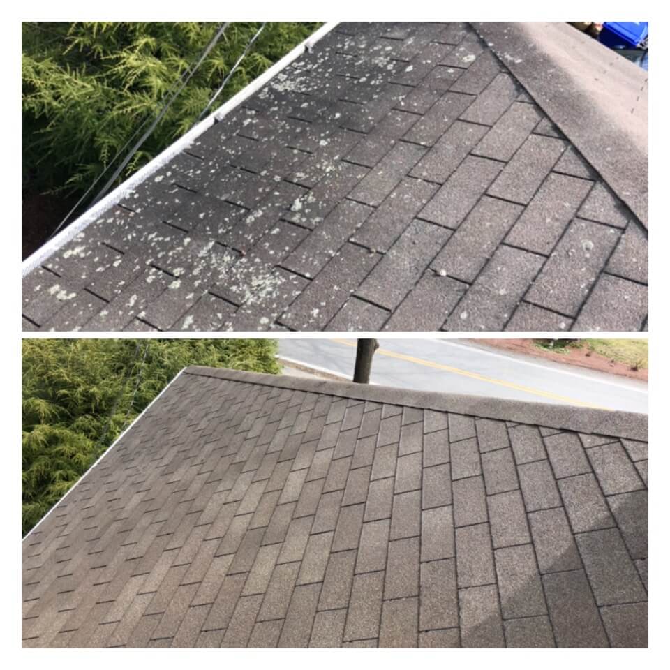 HiCleaners is the most experienced company in Weston, MA that deals with roof washing and roof soft washing. All of our employees are trained to recognize precise solution mixing ratios to provide you with the safest and most effective soft washing service. Roofs are a commonly neglected part of a house due to the fact that most people don’t have ladders to access it, so it is very easy to just leave it alone and forget about problems that may start to arise. Just like many home owners, discoloration and small bits of moss on a roof can be overlooked because of the misconception that it is just aesthetic. However, it isn’t just aesthetic, the moss slowly lifts the granules off the shingles which in turn shorten the life of the shingle. The moss also spreads, just like any bacteria if it is left alone for too long, it can quickly become a problem that spirals out of control. Call HiCleaners for a free quote, we only use the most advanced eco-friendly solutions and equipment to make sure the job is done right, for the safety of the employees, your plants, grass, pets, and children.